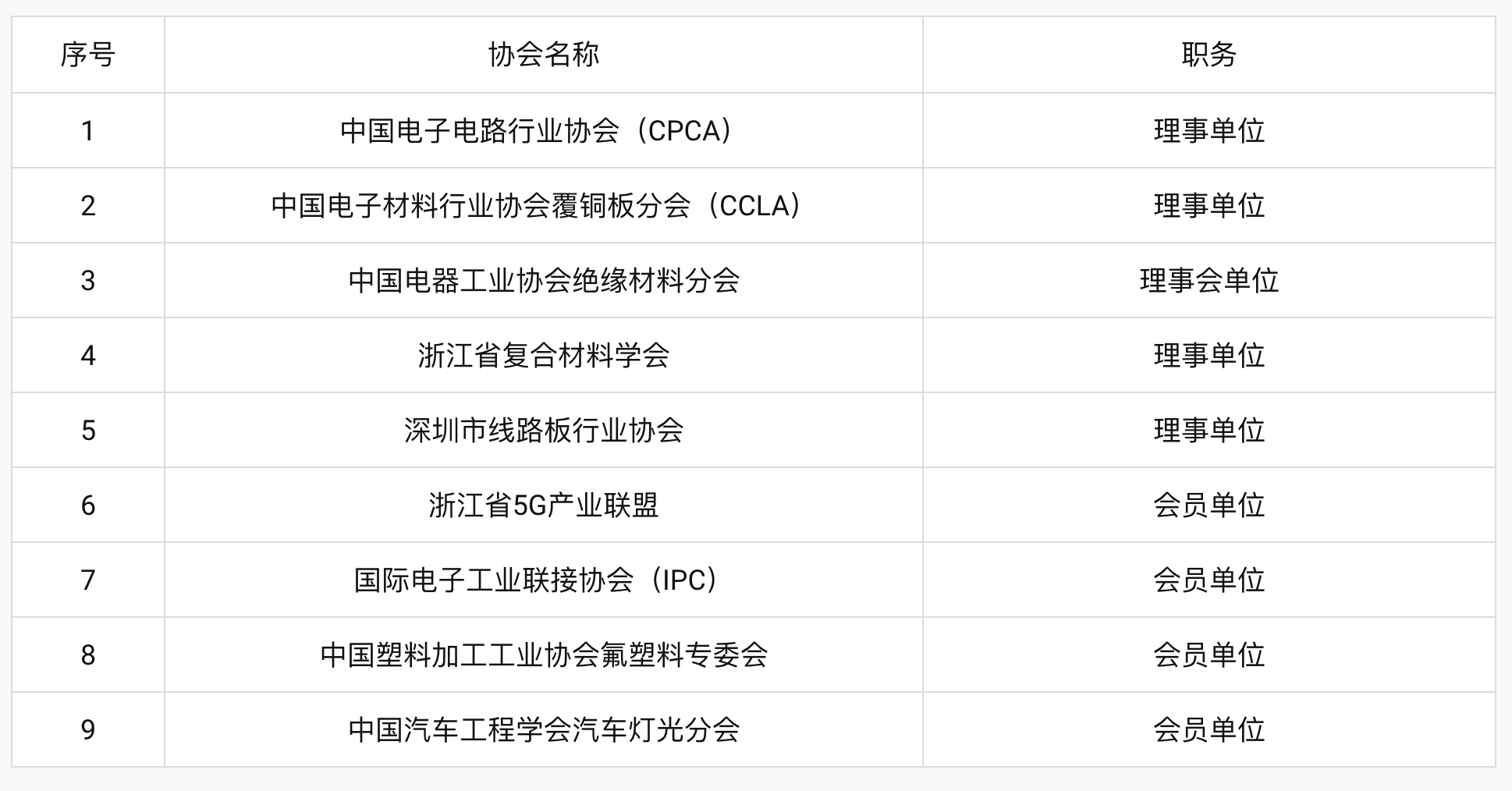 參加行業協會情況一覽表