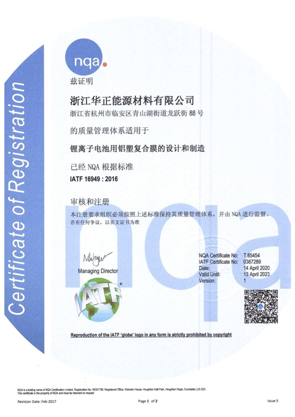 IATF16949【華正能源】